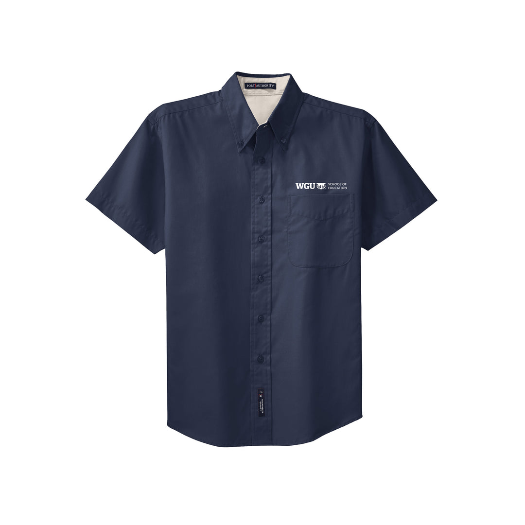 Mens Embroidered School of Education Short Sleeve Easy Care Button up